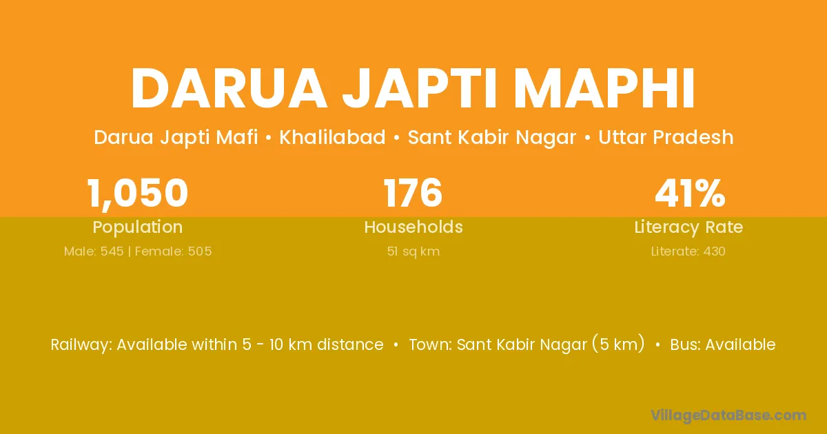 Sant Kabir Nagar (5 km) is the nearest town to Darua Japti Maphi village for major economic activities and is located approximately 5 km away.