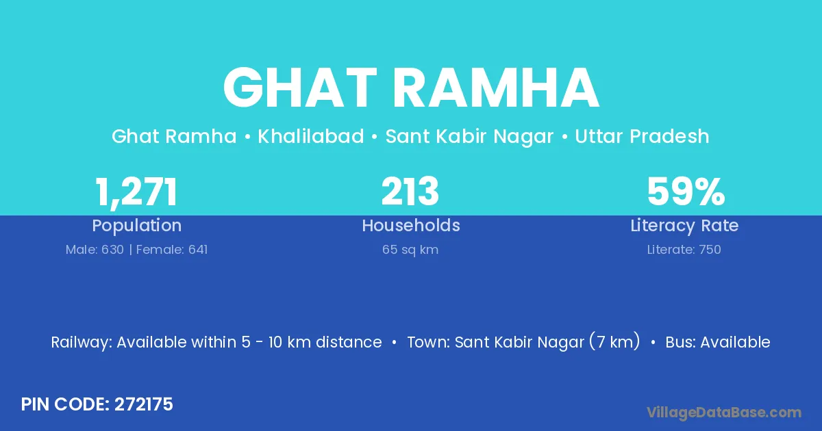 Sant Kabir Nagar (7 km) is the nearest town to Ghat Ramha village for major economic activities and is located approximately 7 km away.