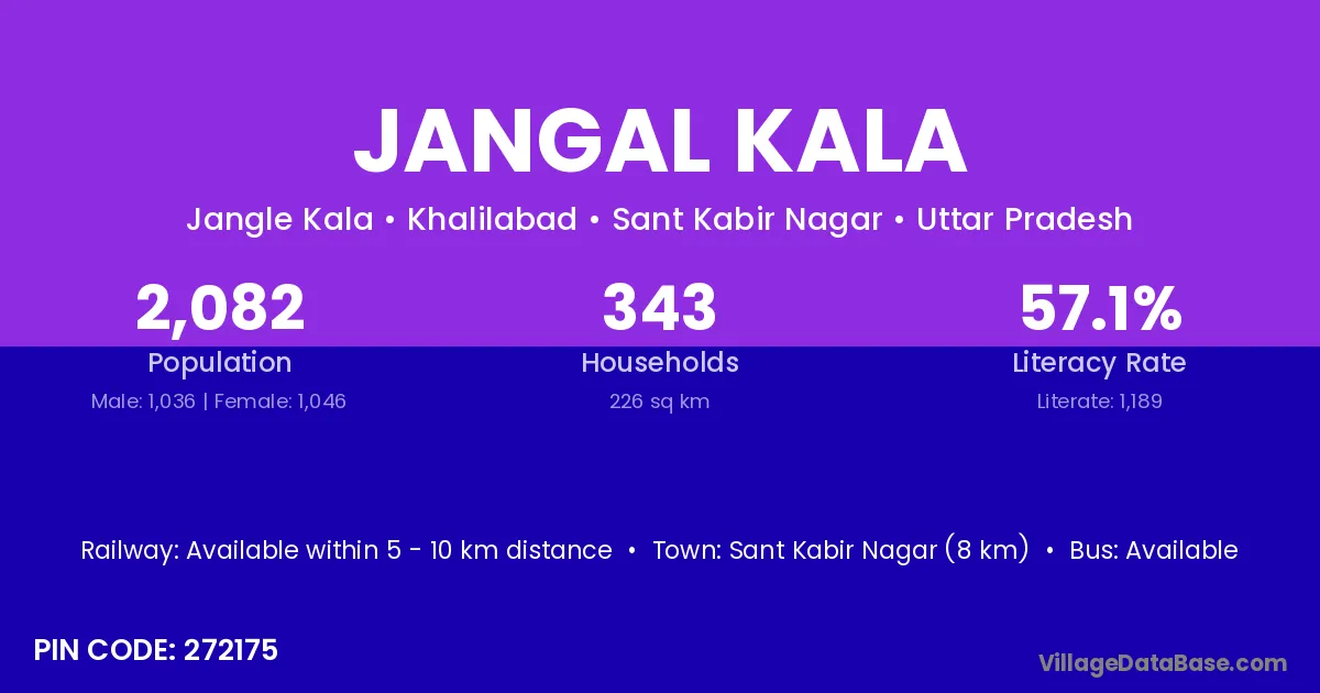 Sant Kabir Nagar (8 km) is the nearest town to Jangal Kala village for major economic activities and is located approximately 8 km away.