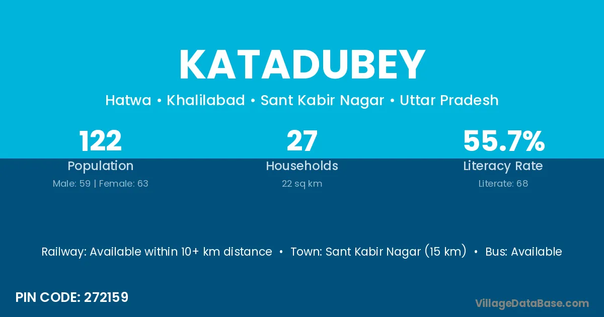 Sant Kabir Nagar (15 km) is the nearest town to Katadubey village for major economic activities and is located approximately 15 km away.