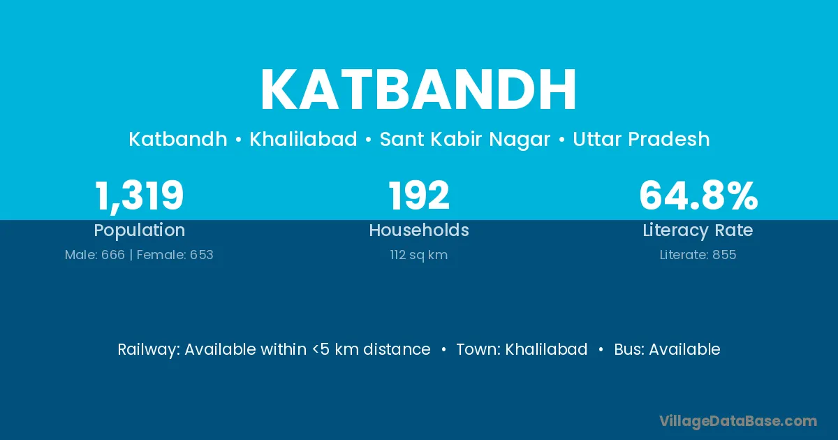 Katbandh village has a total population of 1,319 people, of which 666 are males and 653 are females.