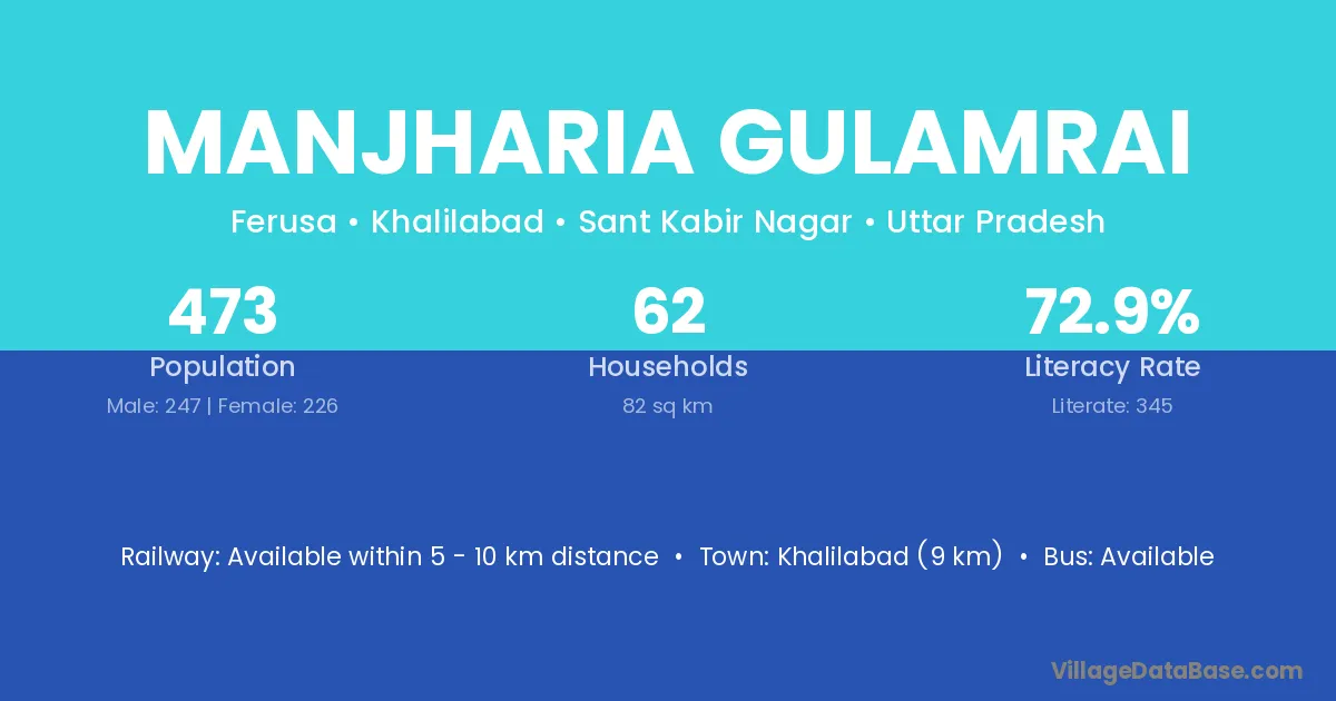 Manjharia Gulamrai village has a total population of 473 people, of which 247 are males and 226 are females.