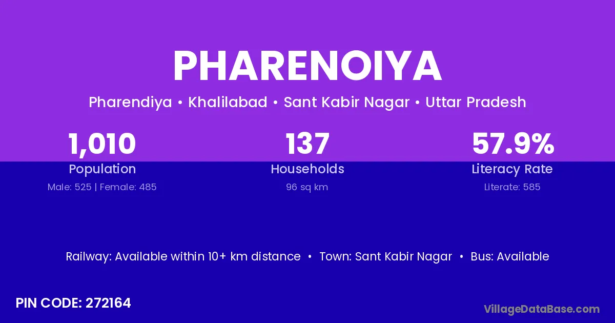 Sant Kabir Nagar is the nearest town to Pharenoiya village for major economic activities