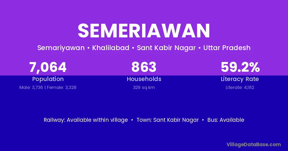 Sant Kabir Nagar is the nearest town to Semeriawan village for major economic activities