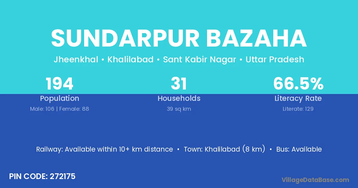 Khalilabad (8 km) is the nearest town to Sundarpur Bazaha village for major economic activities and is located approximately 8 km away.
