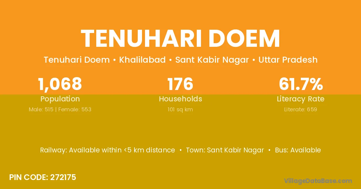 Sant Kabir Nagar is the nearest town to Tenuhari Doem village for major economic activities
