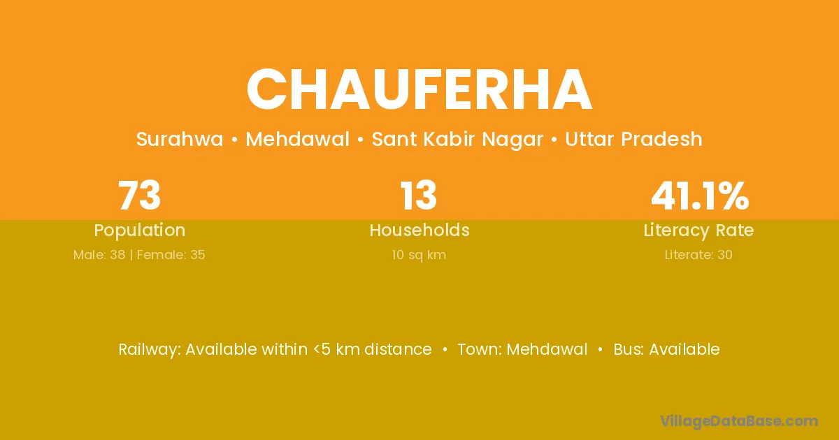 Chauferha village has a total population of 73 people, of which 38 are males and 35 are females.