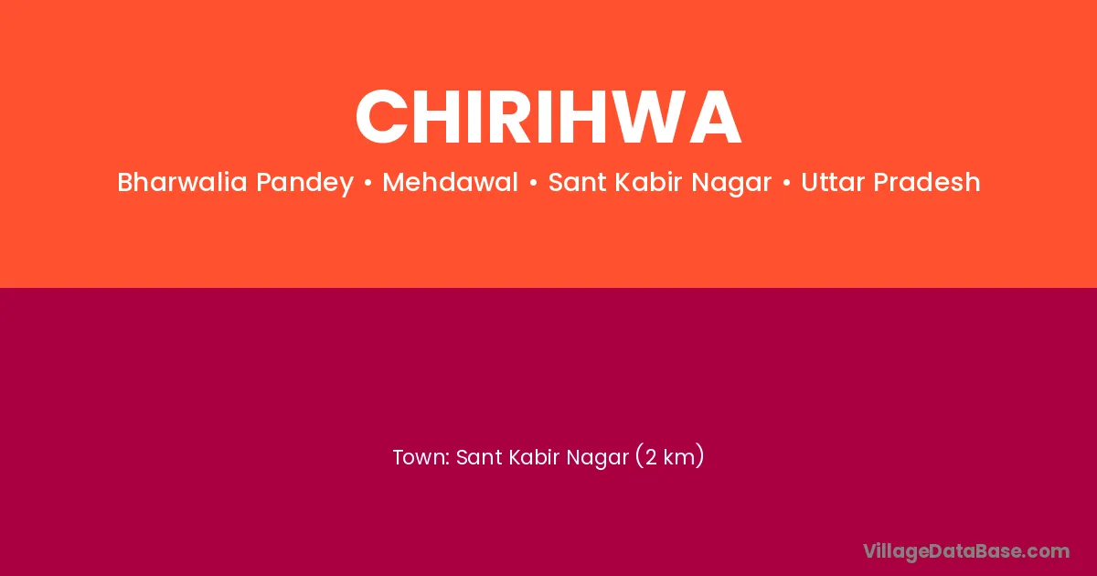 Sant Kabir Nagar (2 km) is the nearest town to Chirihwa village for major economic activities and is located approximately 2 km away.