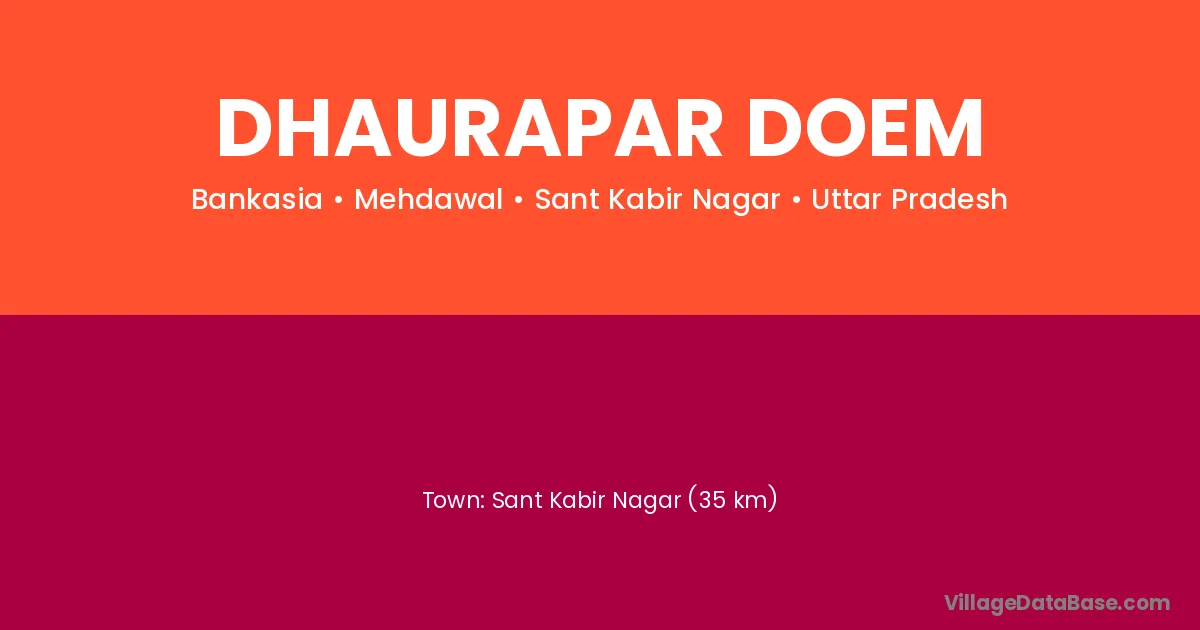 Sant Kabir Nagar (35 km) is the nearest town to Dhaurapar Doem village for major economic activities and is located approximately 35 km away.