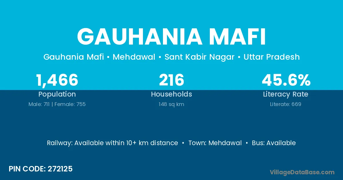 Gauhania Mafi village has a total population of 1,466 people, of which 711 are males and 755 are females.