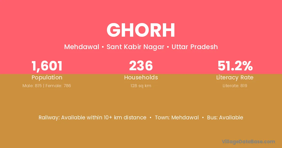Ghorh village has a total population of 1,601 people, of which 815 are males and 786 are females.