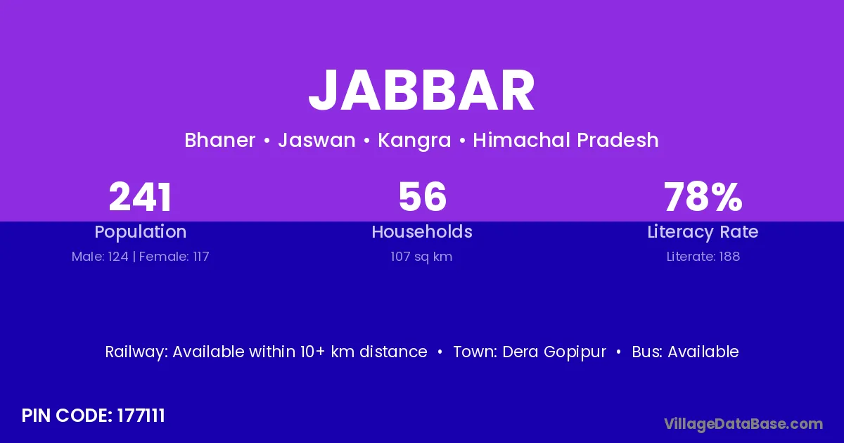 Sant Kabir Nagar (33 km) is the nearest town to Jabbar village for major economic activities and is located approximately 33 km away.