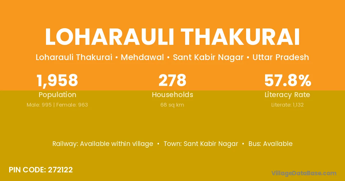 Sant Kabir Nagar is the nearest town to Loharauli Thakurai village for major economic activities