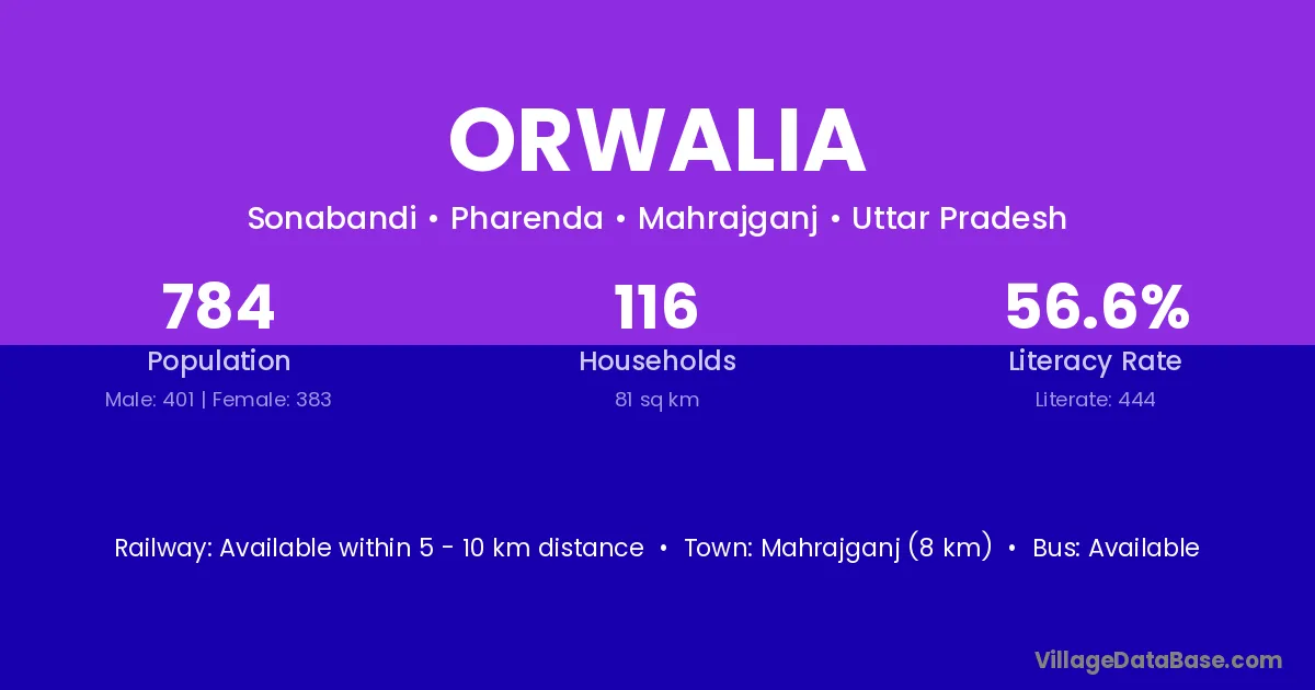 Sant Kabir Nagar (27 km) is the nearest town to Orwalia village for major economic activities and is located approximately 27 km away.