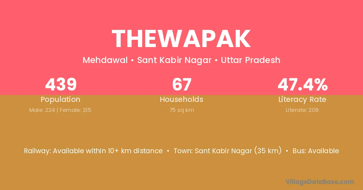 Sant Kabir Nagar (35 km) is the nearest town to Thewapak village for major economic activities and is located approximately 35 km away.