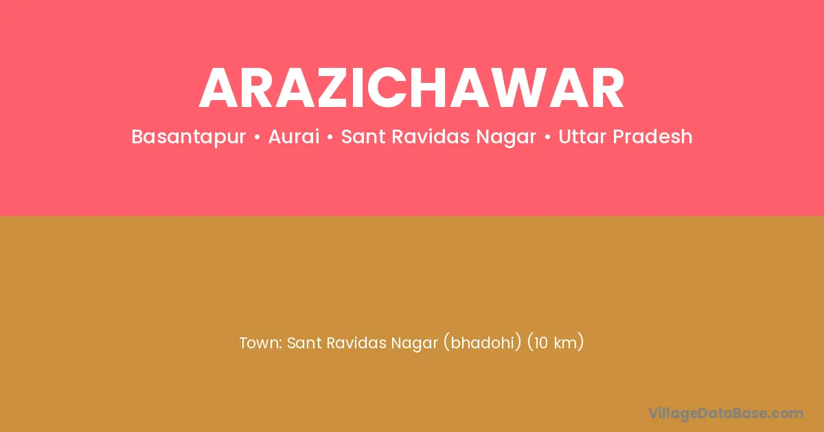 Sant Ravidas Nagar (bhadohi) (10 km) is the nearest town to Arazichawar village for major economic activities and is located approximately 10 km away.