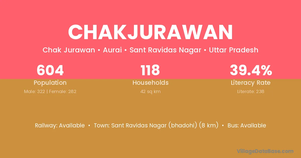 Sant Ravidas Nagar (bhadohi) (8 km) is the nearest town to Chakjurawan village for major economic activities and is located approximately 8 km away.