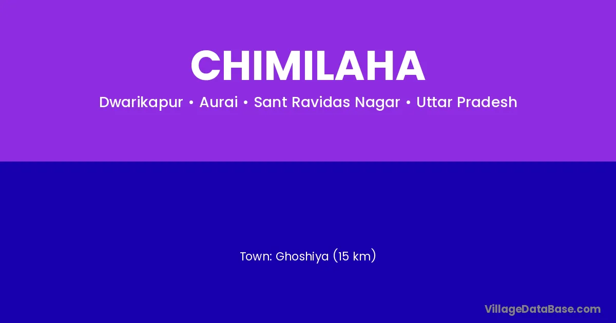 Ghoshiya (15 km) is the nearest town to Chimilaha village for major economic activities and is located approximately 15 km away.