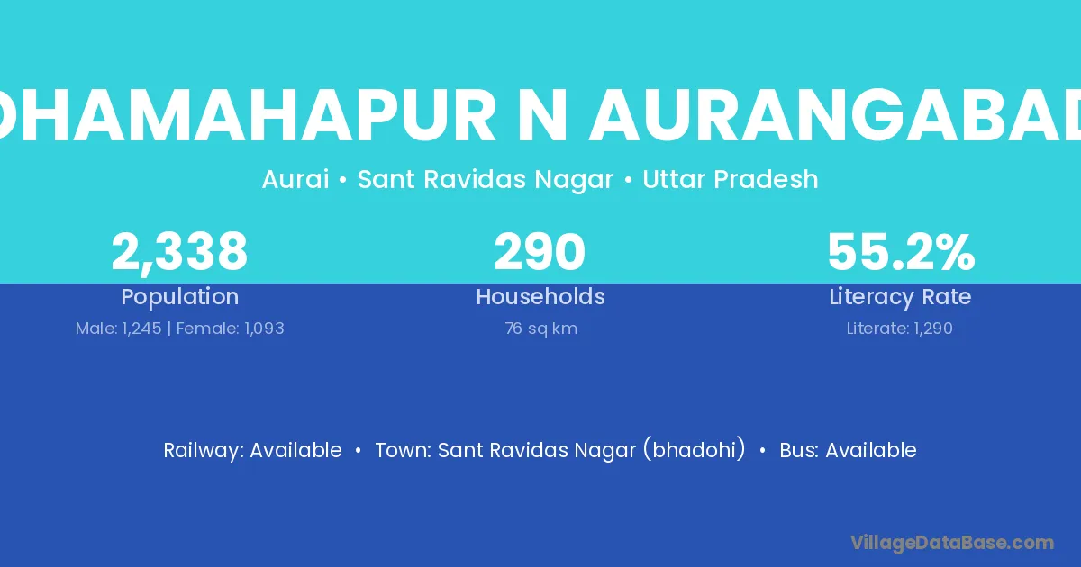 Dhamahapur N Aurangabad village has a total population of 2,338 people, of which 1,245 are males and 1,093 are females.