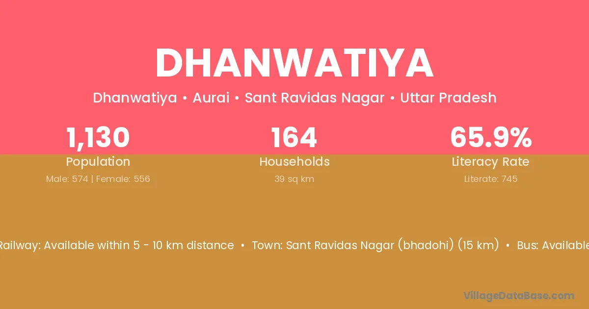 Sant Ravidas Nagar (bhadohi) (15 km) is the nearest town to Dhanwatiya village for major economic activities and is located approximately 15 km away.