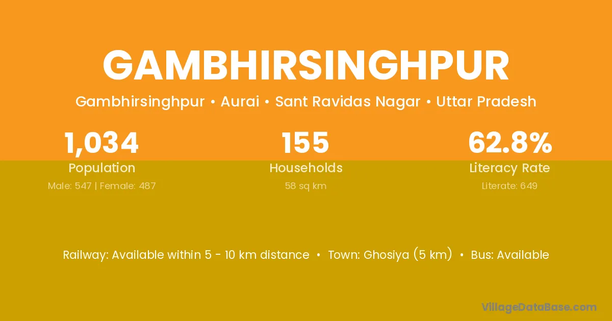 Ghosiya (5 km) is the nearest town to Gambhirsinghpur village for major economic activities and is located approximately 5 km away.