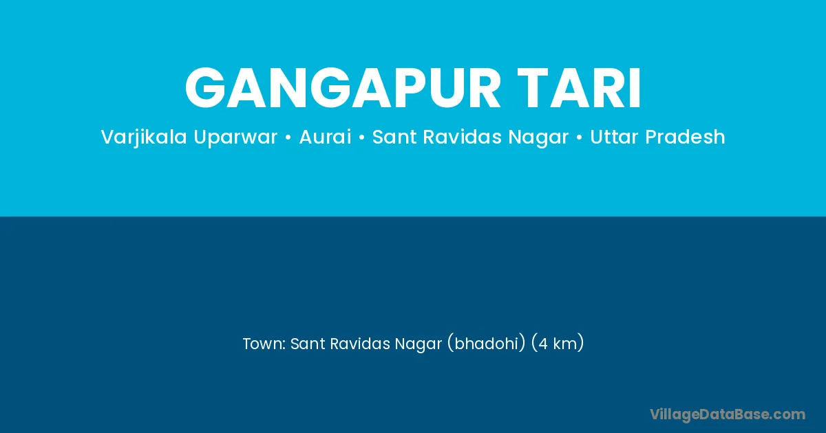Sant Ravidas Nagar (bhadohi) (4 km) is the nearest town to Gangapur Tari village for major economic activities and is located approximately 4 km away.