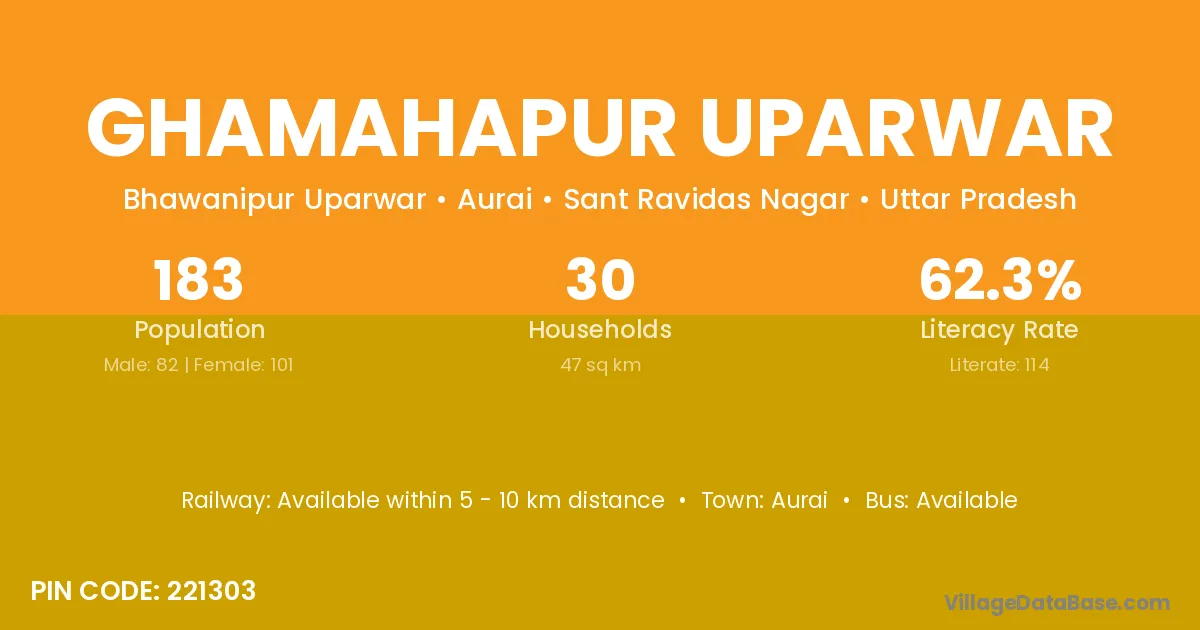 Ghamahapur Uparwar village has a total population of 183 people, of which 82 are males and 101 are females.