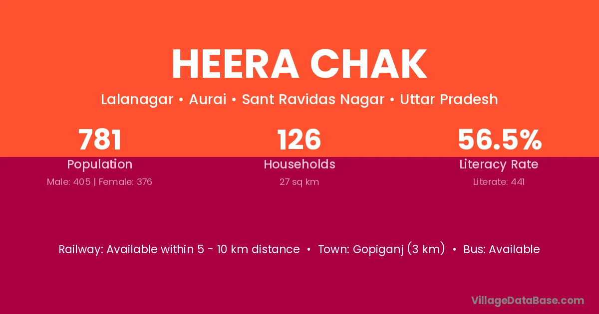 Gopiganj (3 km) is the nearest town to Heera Chak village for major economic activities and is located approximately 3 km away.