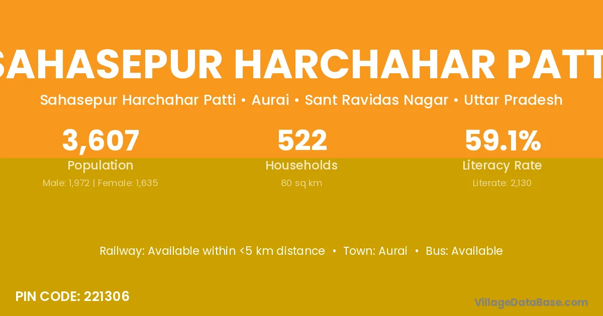 Sahasepur Harchahar Patti village has a total population of 3,607 people, of which 1,972 are males and 1,635 are females.