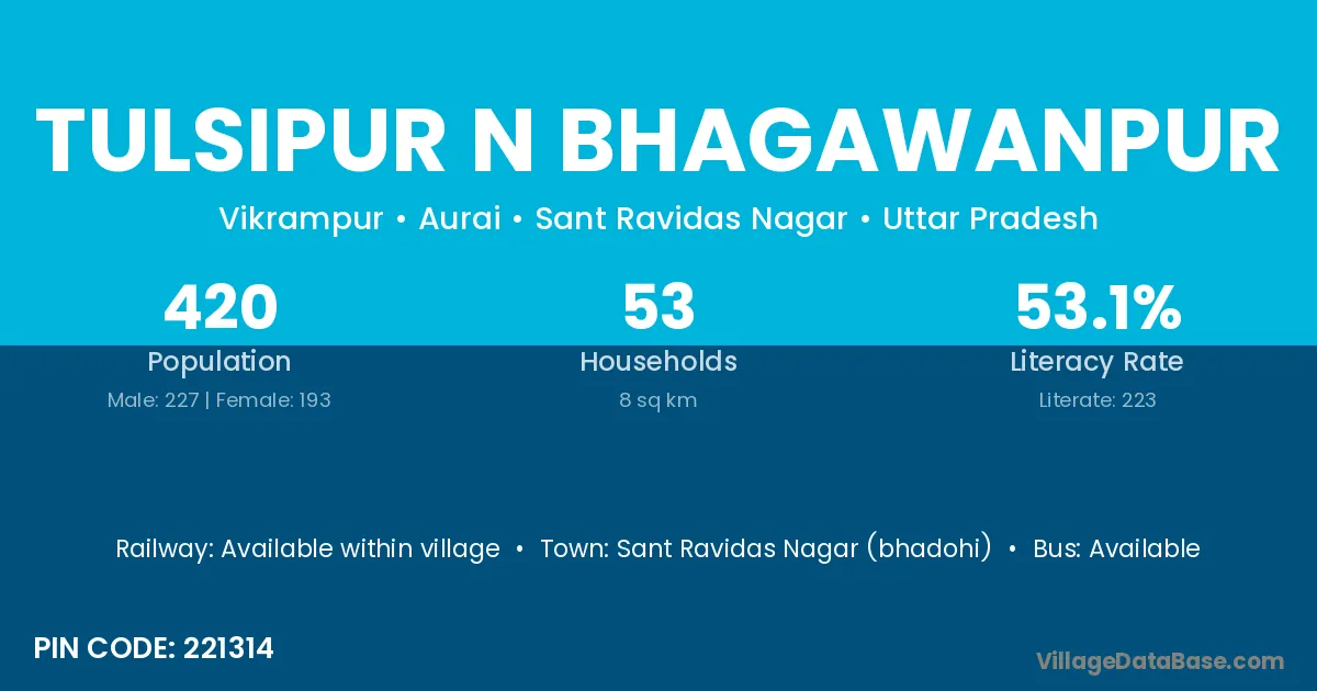 Sant Ravidas Nagar (bhadohi) is the nearest town to Tulsipur N Bhagawanpur village for major economic activities