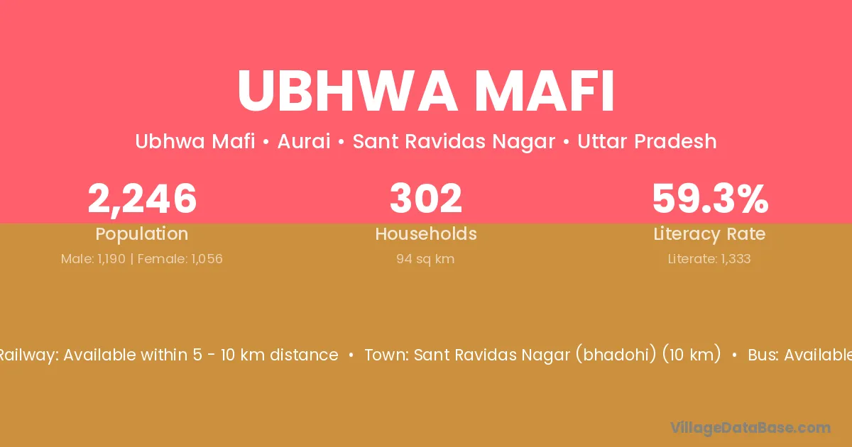 Sant Ravidas Nagar (bhadohi) (10 km) is the nearest town to Ubhwa Mafi village for major economic activities and is located approximately 10 km away.