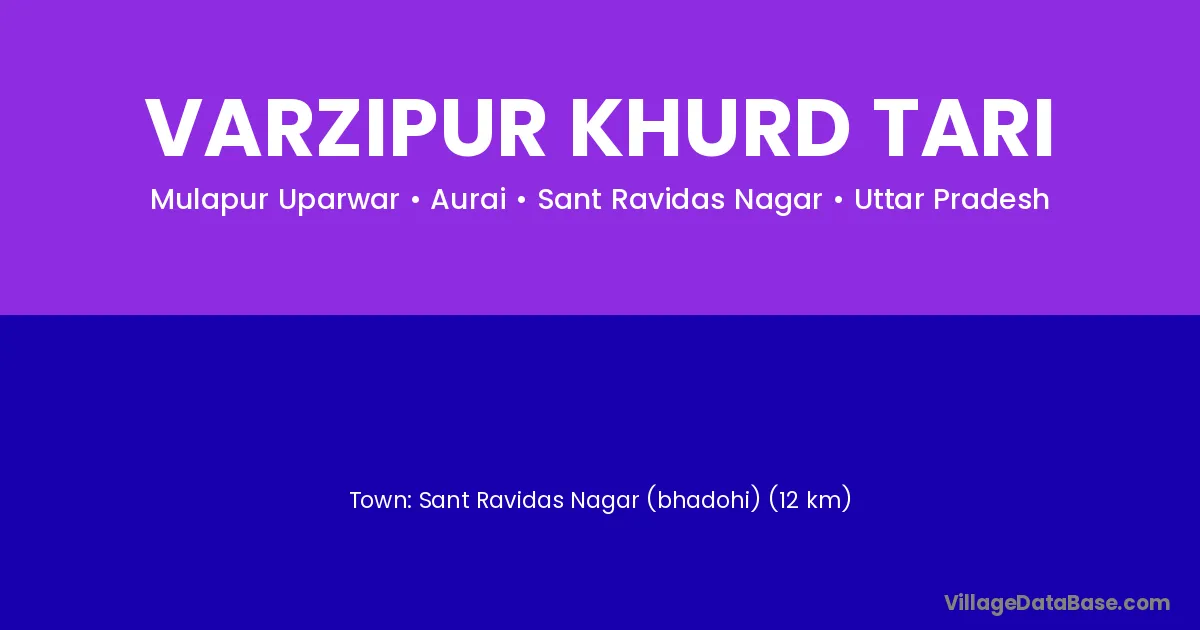 Sant Ravidas Nagar (bhadohi) (12 km) is the nearest town to Varzipur Khurd Tari village for major economic activities and is located approximately 12 km away.