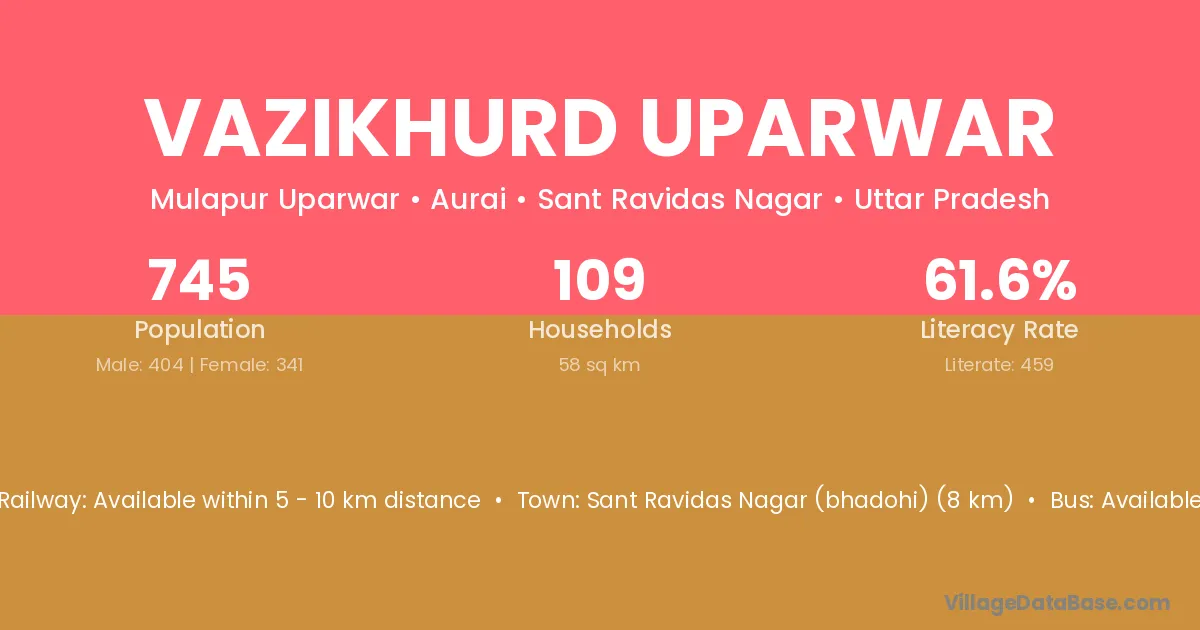 Sant Ravidas Nagar (bhadohi) (8 km) is the nearest town to Vazikhurd Uparwar village for major economic activities and is located approximately 8 km away.