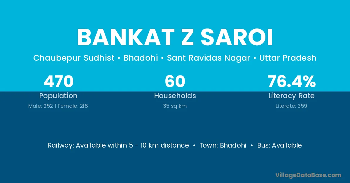 Bankat Z Saroi village is located in the Bhadohi Tehsil of the Sant Ravidas Nagar district in Uttar Pradesh .