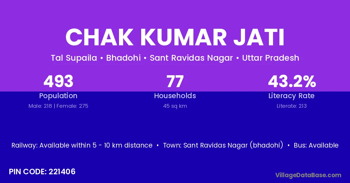 Sant Ravidas Nagar (bhadohi) is the nearest town to Chak Kumar Jati village for major economic activities