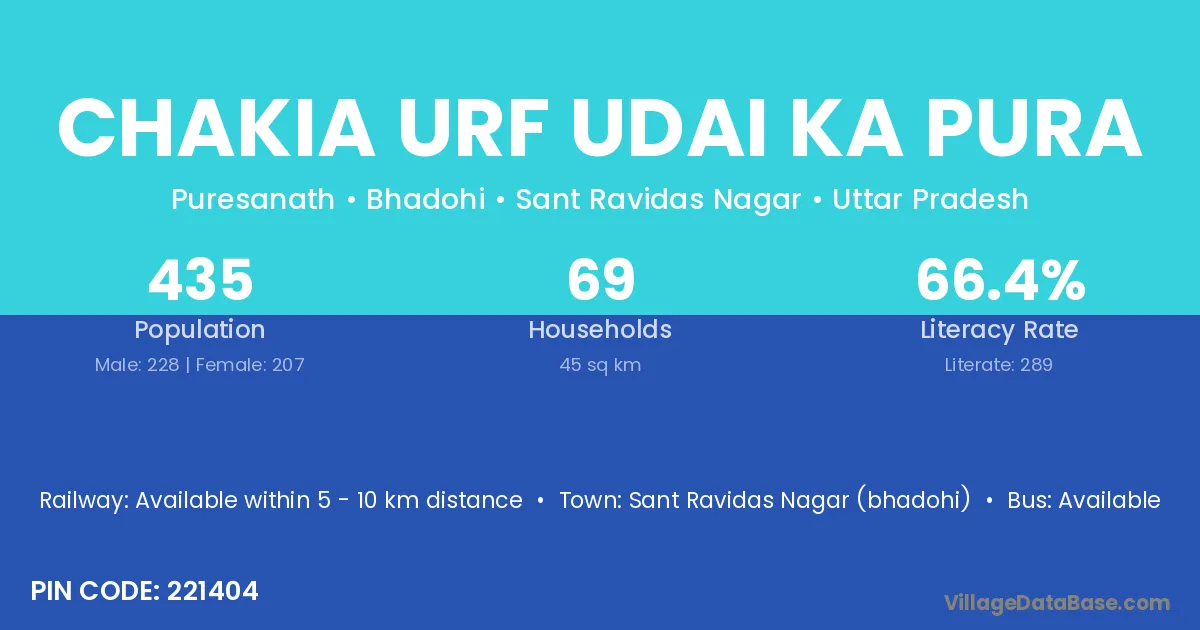 Chakia Urf Udai Ka Pura village has a total population of 435 people, of which 228 are males and 207 are females.