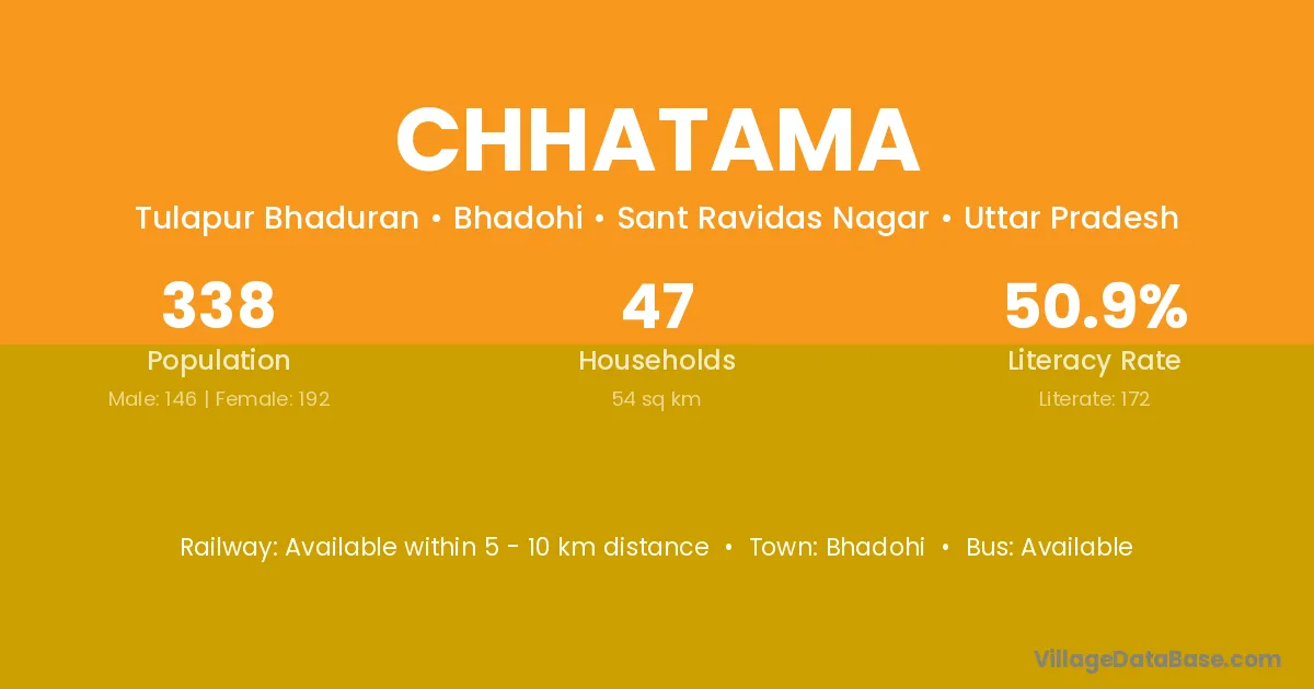 Bhadohi is the nearest town to Chhatama village for major economic activities