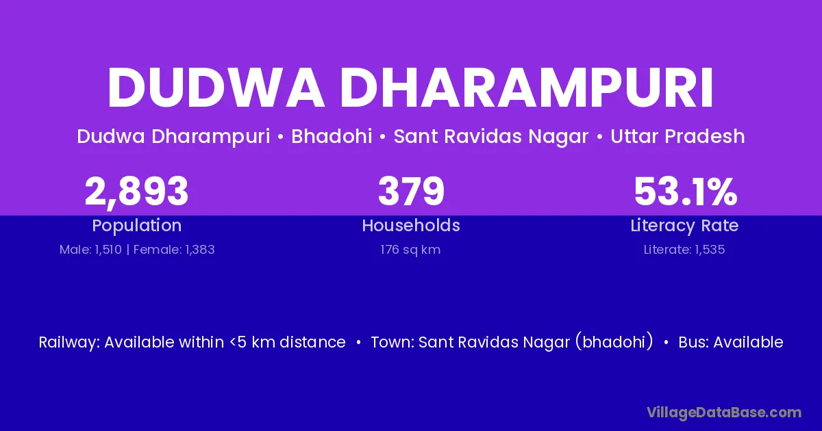 Sant Ravidas Nagar (bhadohi) is the nearest town to Dudwa Dharampuri village for major economic activities
