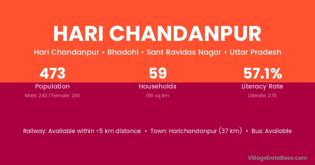 Hari Chandanpur village has a total population of 473 people, of which 243 are males and 230 are females.
