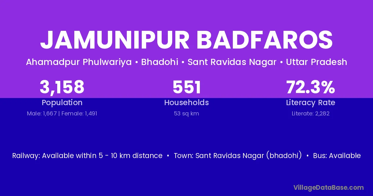 Sant Ravidas Nagar (bhadohi) is the nearest town to Jamunipur Badfaros village for major economic activities