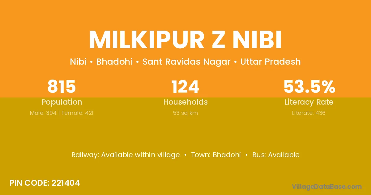 Milkipur Z Nibi village has a total population of 815 people, of which 394 are males and 421 are females.