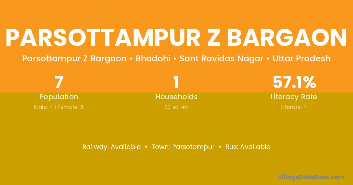 Parsottampur Z Bargaon village has a total population of 7 people, of which 4 are males and 3 are females.