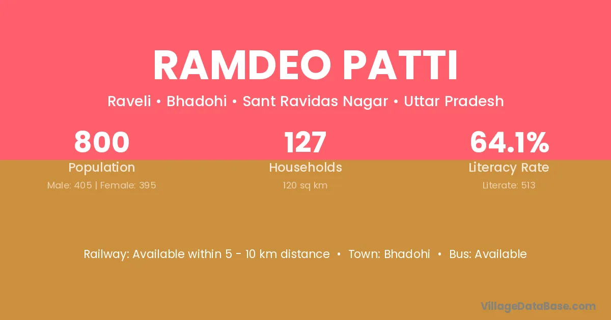 Ramdeo Patti village has a total population of 800 people, of which 405 are males and 395 are females.