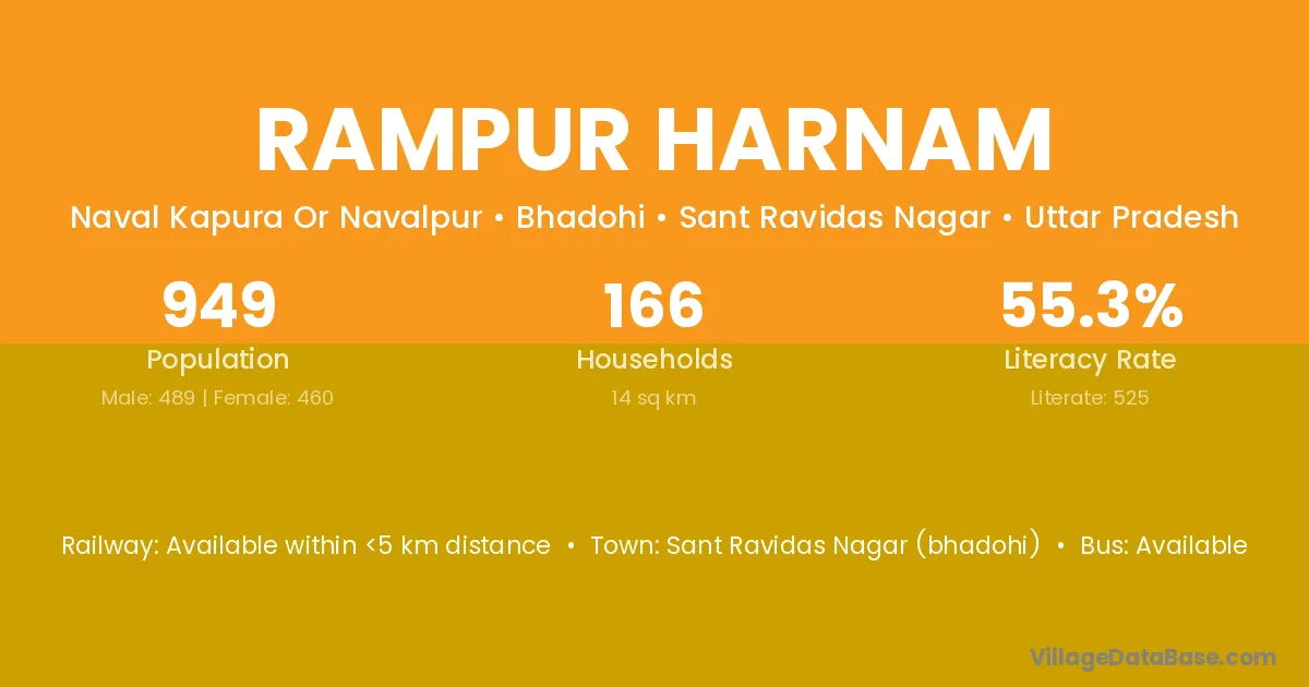Sant Ravidas Nagar (bhadohi) is the nearest town to Rampur Harnam village for major economic activities