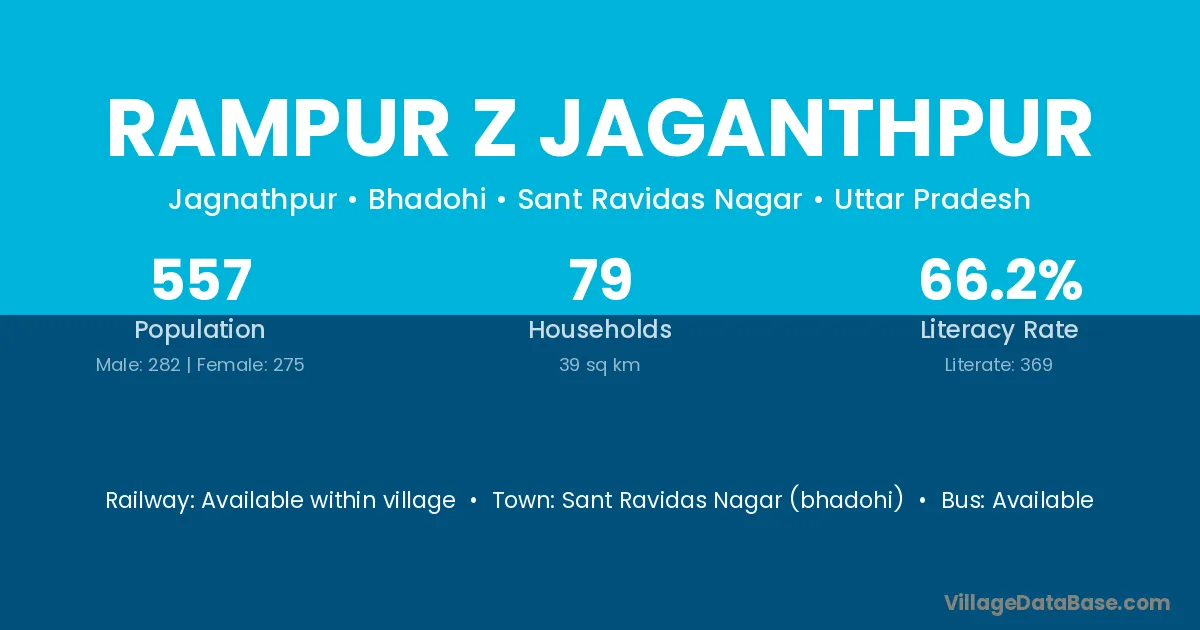 Sant Ravidas Nagar (bhadohi) is the nearest town to Rampur Z Jaganthpur village for major economic activities
