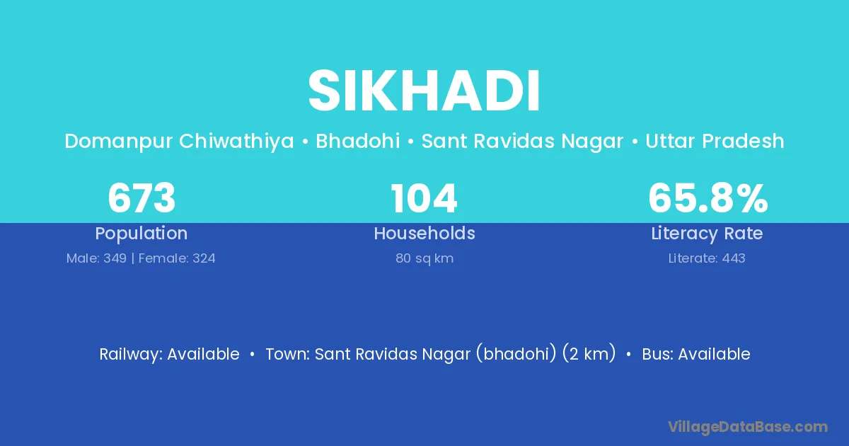 Sant Ravidas Nagar (bhadohi) (2 km) is the nearest town to Sikhadi village for major economic activities and is located approximately 2 km away.