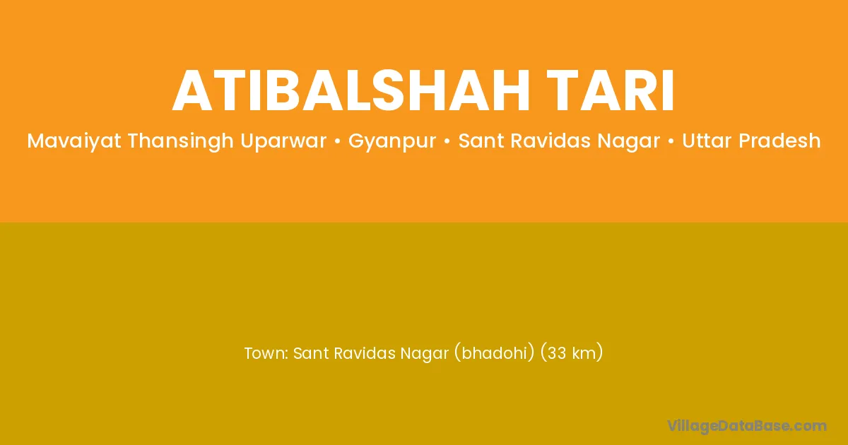 Sant Ravidas Nagar (bhadohi) (33 km) is the nearest town to Atibalshah Tari village for major economic activities and is located approximately 33 km away.