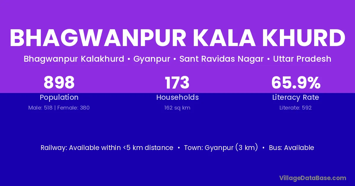 Gyanpur (3 km) is the nearest town to Bhagwanpur Kala Khurd village for major economic activities and is located approximately 3 km away.