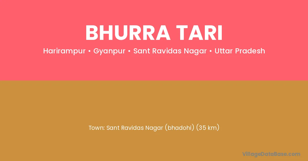 Sant Ravidas Nagar (bhadohi) (35 km) is the nearest town to Bhurra Tari village for major economic activities and is located approximately 35 km away.