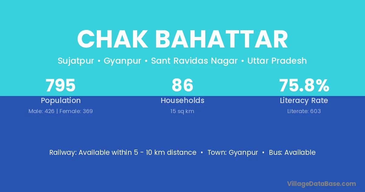 Chak Bahattar village has a total population of 795 people, of which 426 are males and 369 are females.